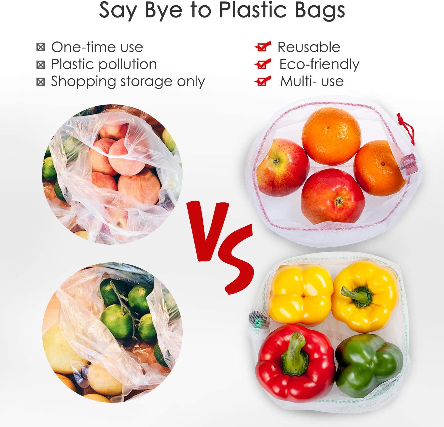 Cero residuos y ecológico: un paso más cerca de un estilo de vida cero residuos y corta el uso de la bolsa de plástico de una manera conveniente; obtén 15 bolsas reutilizables y duraderas, gran adición a tu objetivo de estar libre de plástico y ayudar al medio ambiente, y cada bolsa de malla tiene el potencial de eliminar hasta 1000 bolsas de plástico a lo largo de su vida.